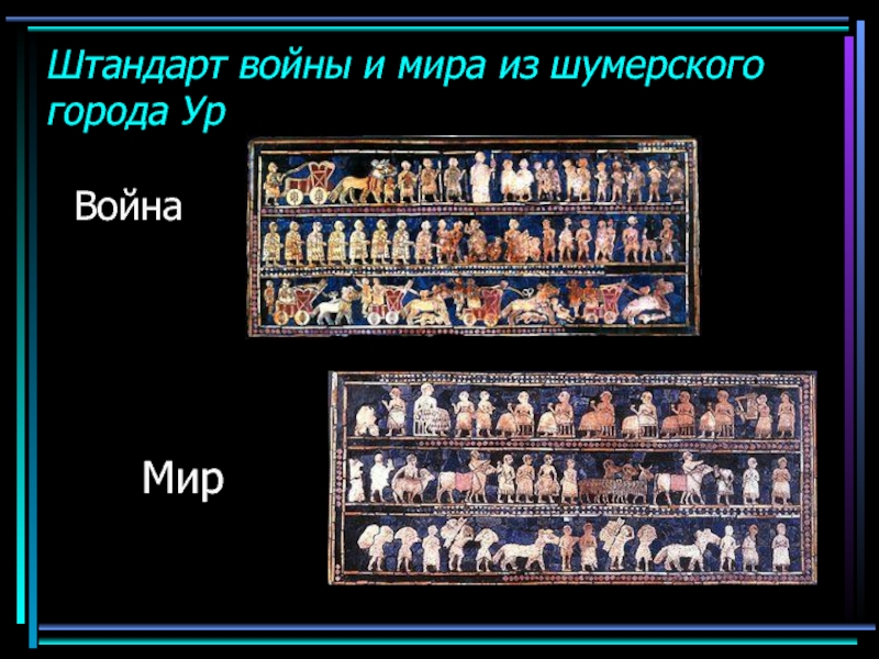 Слайд 14Штандарт войны и мира из шумерского города Ур