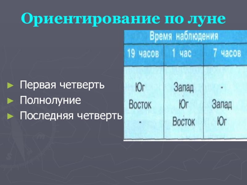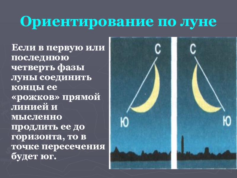 Слайд 7Ориентирование по луне