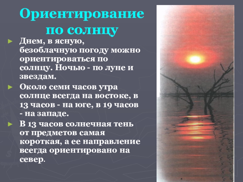 Слайд 5Ориентирование по солнцу