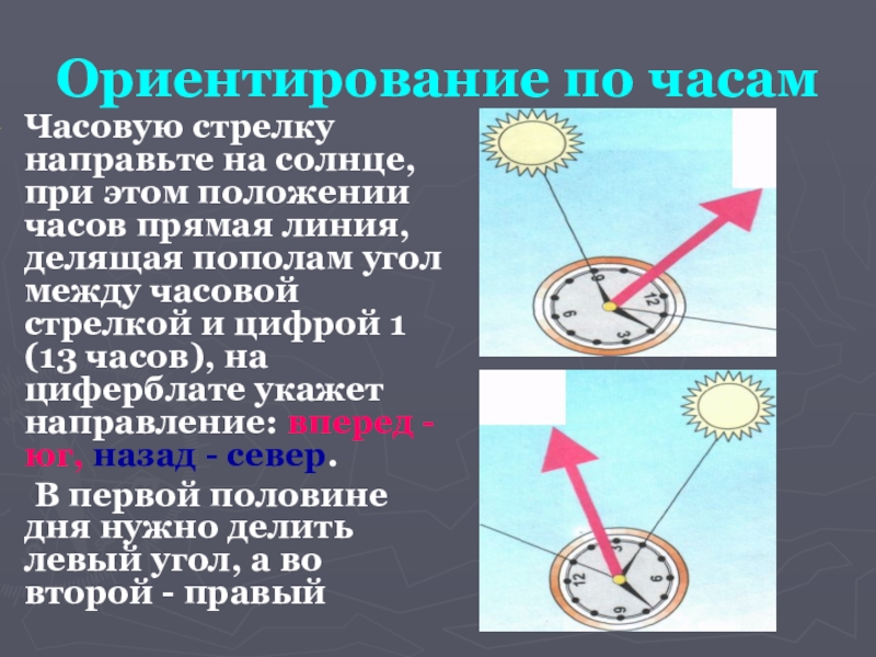 Слайд 6Ориентирование по часам