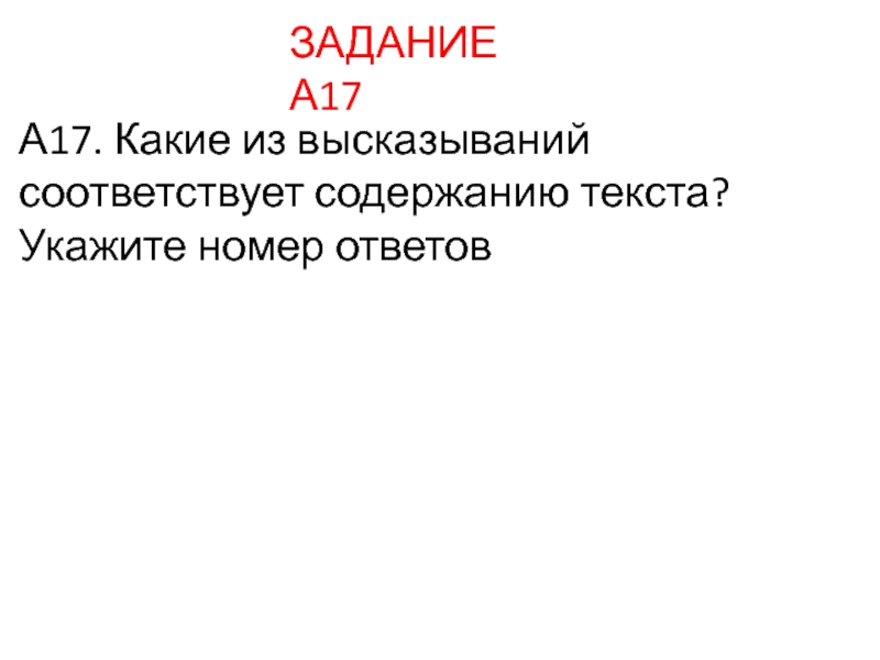 Слайд 16А17. Какие из высказываний соответствует содержанию текста? Укажите номер ответов