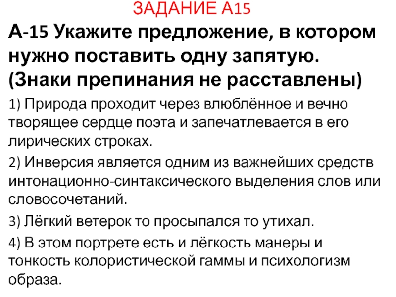 А-15 Укажите предложение, в котором нужно поставить одну запятую.