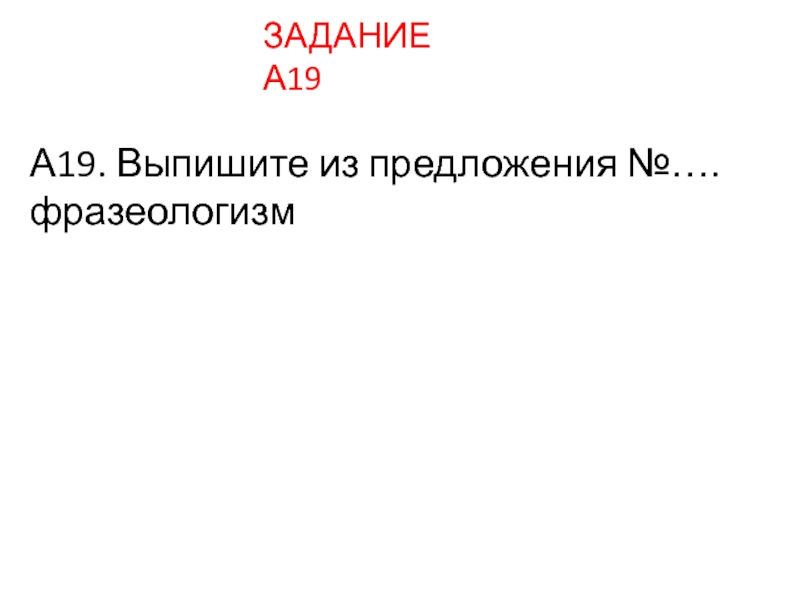 Слайд 18А19. Выпишите из предложения №…. фразеологизм