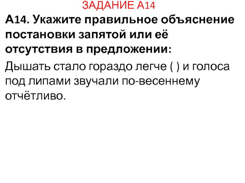 А14. Укажите правильное объяснение постановки запятой или её отсутствия