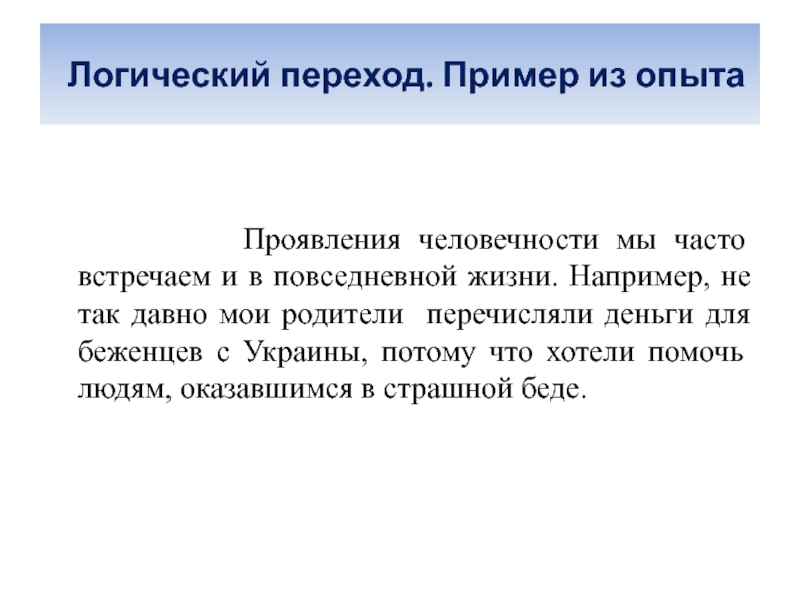 Слайд 10 Логический переход. Пример из опыта