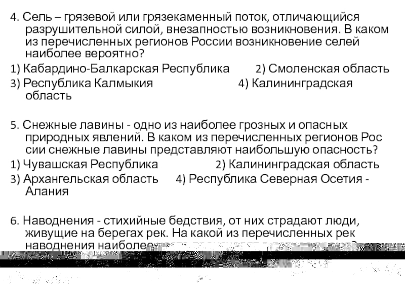 внезапностью возникновения. В каком из перечисленных регионов России возникновение селей
