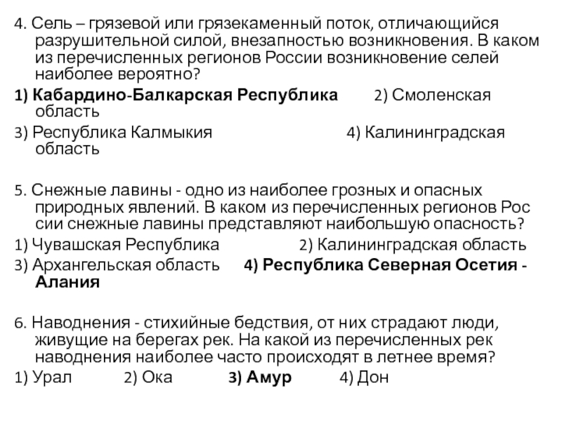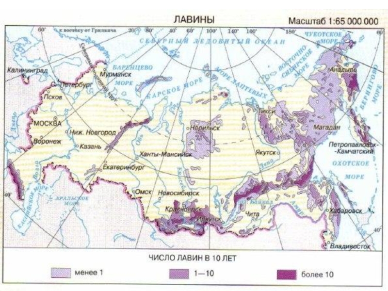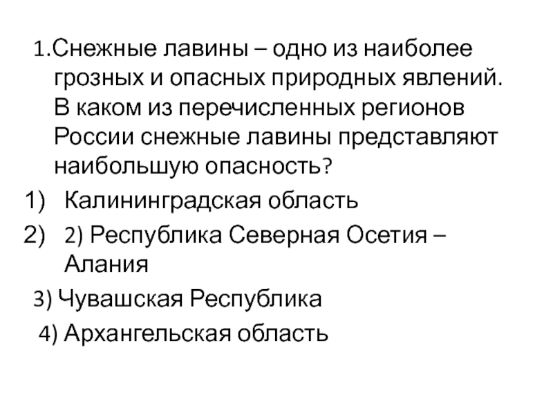 явлений. В каком из перечисленных регионов России снежные лавины представляют