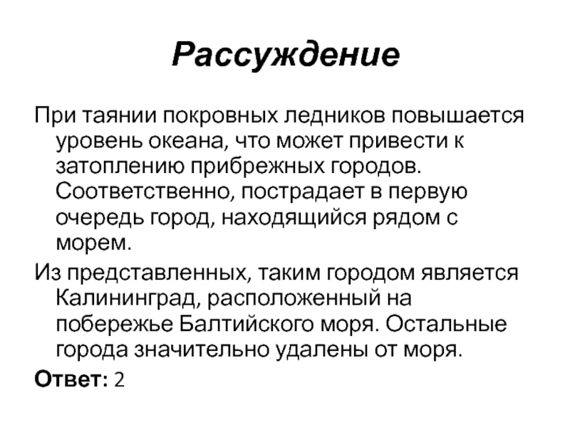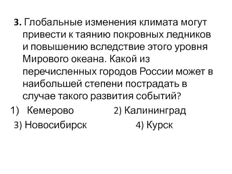 и повышению вследствие этого уровня Мирового океана. Какой из перечисленных