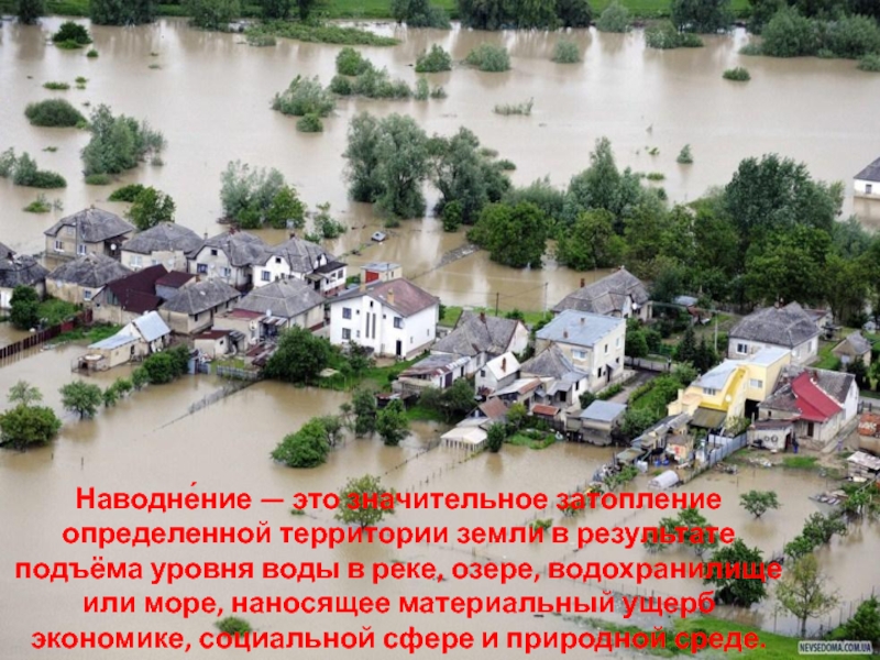 Слайд 11Наводне́ние — это значительное затопление определенной территории земли в результате подъёма