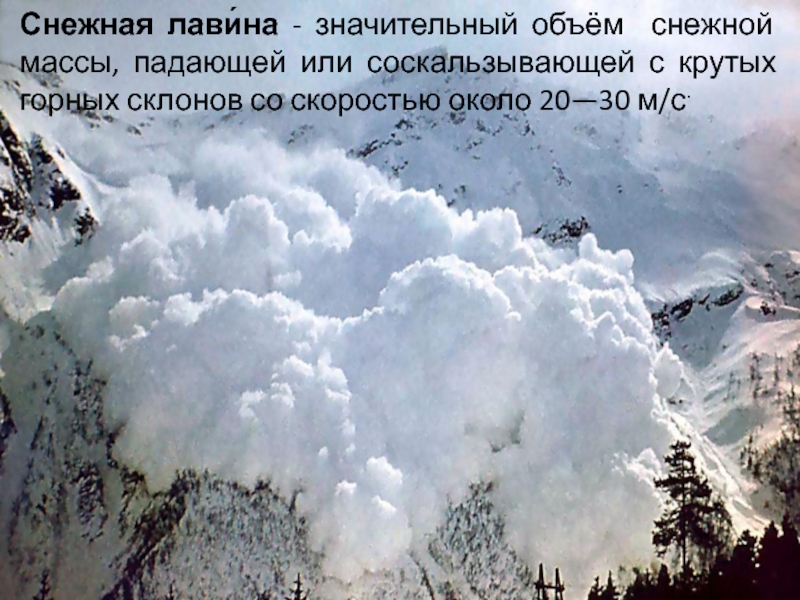 Слайд 16Снежная лави́на - значительный объём снежной массы, падающей или соскальзывающей