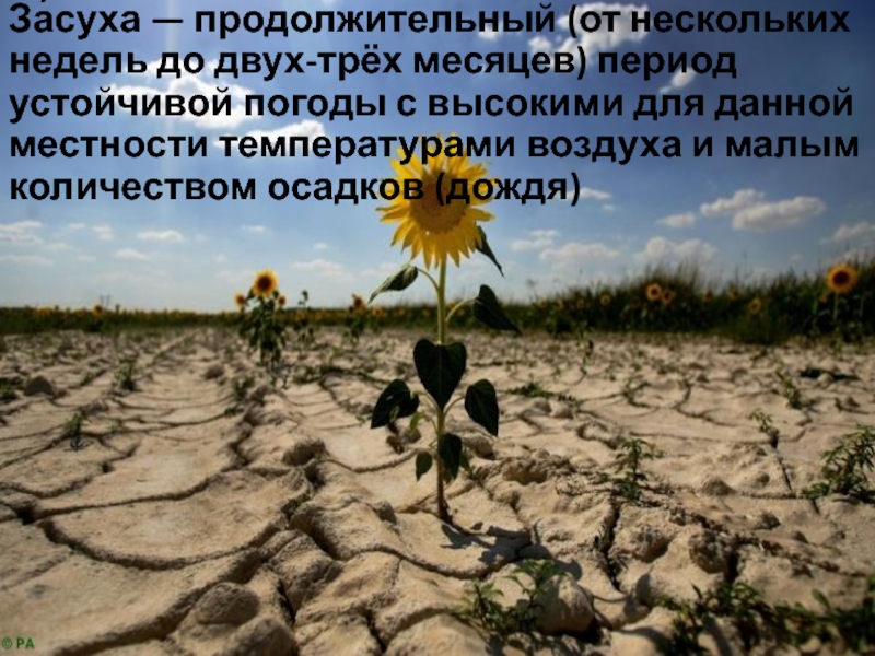 Слайд 14За́суха — продолжительный (от нескольких недель до двух-трёх месяцев) период устойчивой