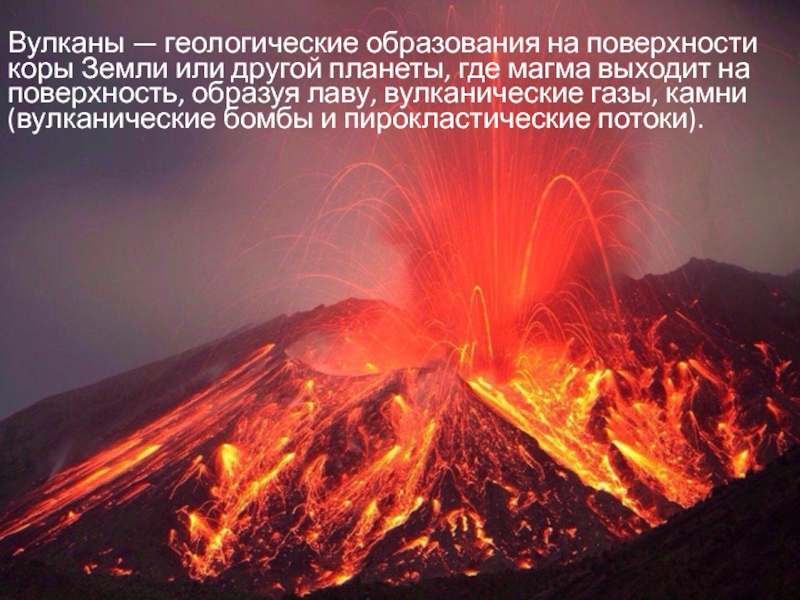 Слайд 8Вулканы — геологические образования на поверхности коры Земли или другой планеты,
