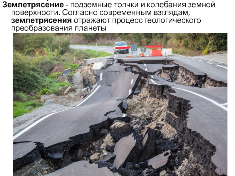 Слайд 6Землетрясе́ние - подземные толчки и колебания земной поверхности. Согласно современным
