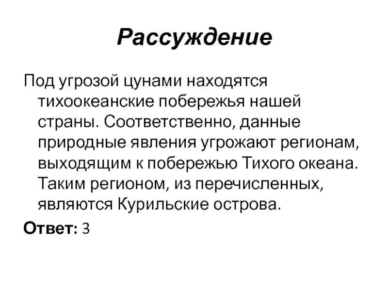 прибрежных городов и населённых пунктов. На какой из перечисленных территорий России необходима работа специальных служб по предупреждению населения о цунами?