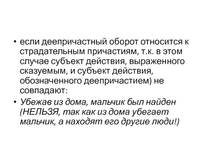Слайд 34если деепричастный оборот относится к страдательным причастиям, т.к. в этом