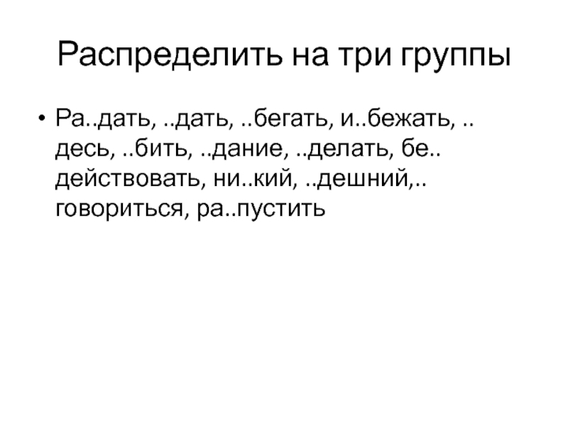 Слайд 7Распределить на три группы