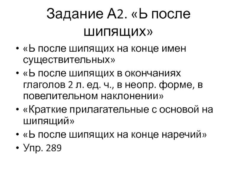 Слайд 9Задание А2. «Ь после шипящих»