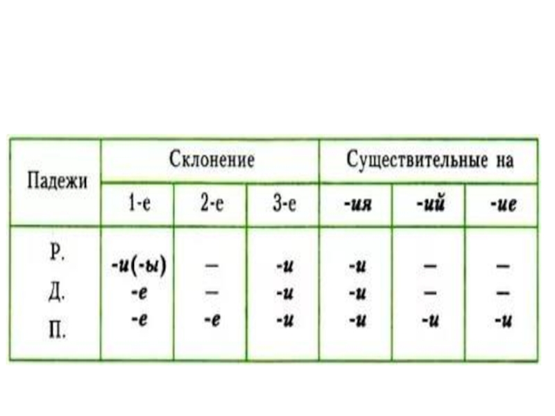 «-Е»: у сущ. 1 скл. В Д.п. и П.п.