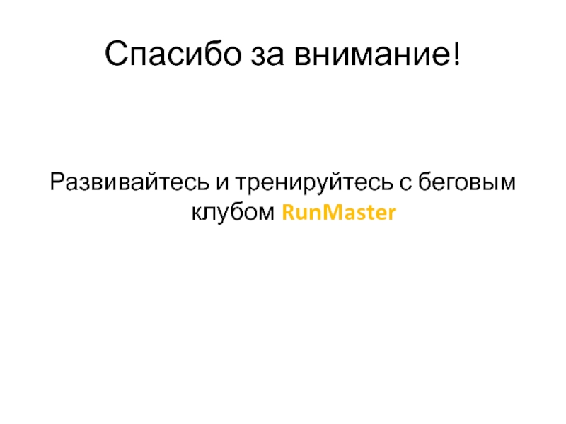 Спасибо за внимание! Развивайтесь и тренируйтесь с беговым клубом RunMaster