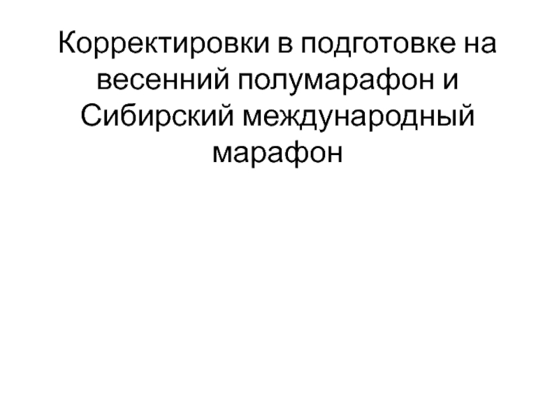 Слайд 23Корректировки в подготовке на весенний полумарафон и Сибирский международный марафон