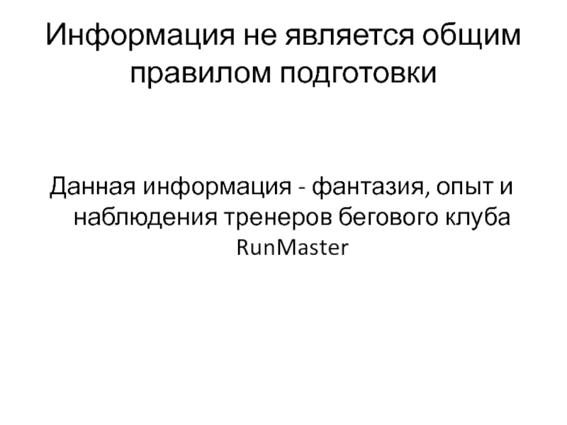 Информация не является общим правилом подготовкиДанная информация - фантазия, опыт и наблюдения тренеров бегового клуба RunMaster
