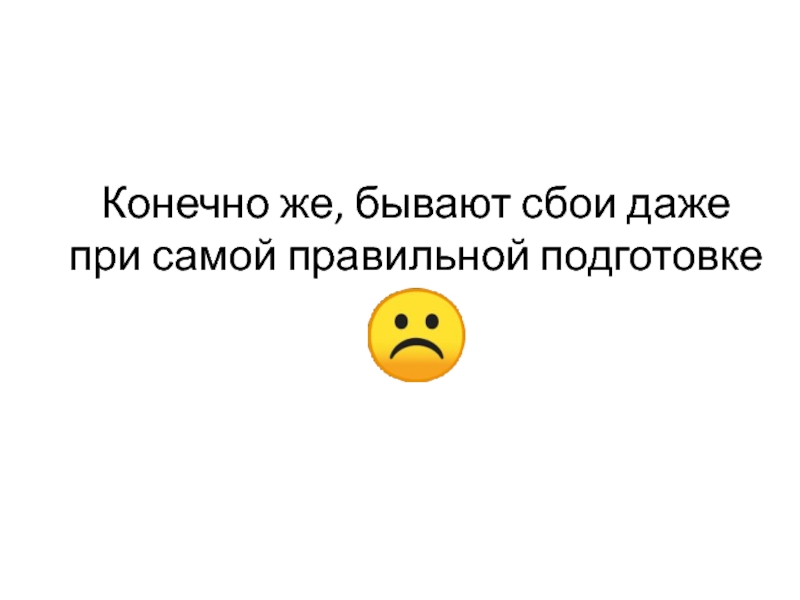 Слайд 13Конечно же, бывают сбои даже при самой правильной подготовке 