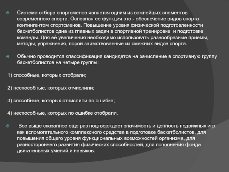2.3 Методика спортивного отбора в спортивной тренировке баскетболистов