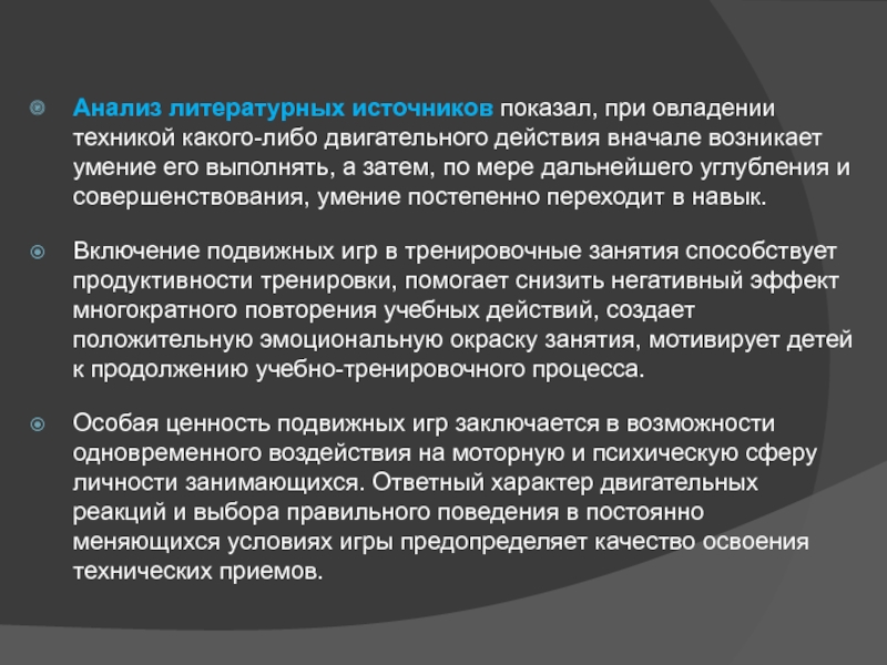 Слайд 7Анализ литературных источников показал, при овладении техникой какого-либо двигательного действия