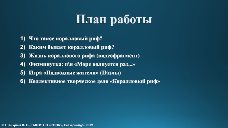 © Столярова В. Е., ГБПОУ СО «СОПК», Екатеринбург, 2019