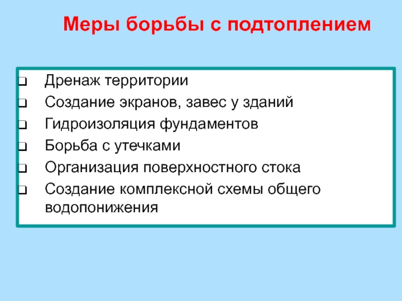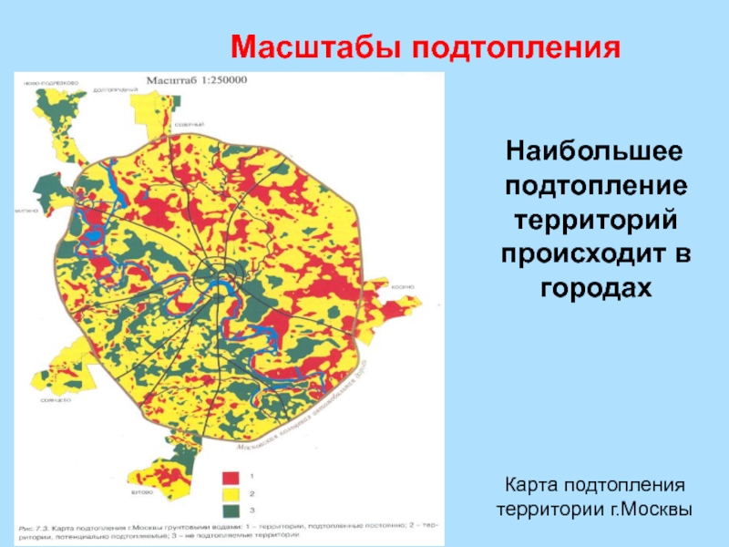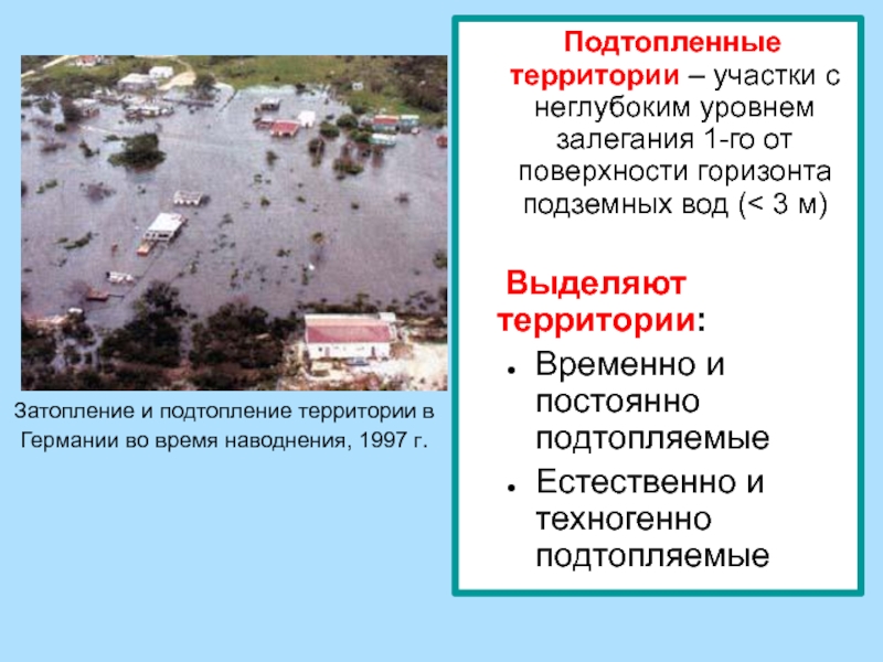 Слайд 19 Подтопленные территории – участки с неглубоким уровнем залегания