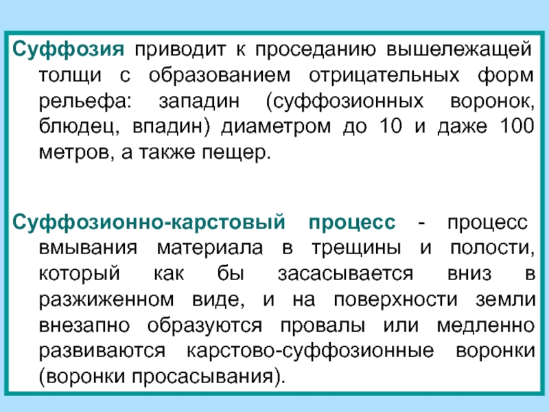 Слайд 59Недоучет карстовых и карстово-суффозионных процессов в инженерно-строительной деятельности может привести
