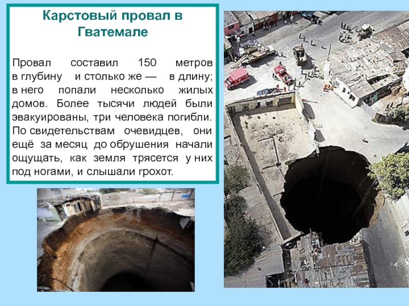 кв. метр и глубиной около двух метров. Позднее размеры провала несколько увеличились.
