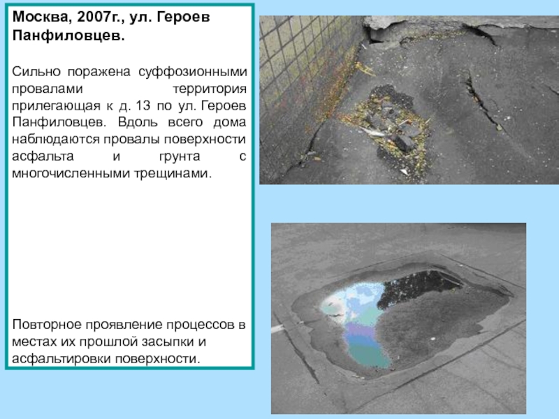 Повторное проявление процессов в местах их прошлой засыпки и асфальтировки поверхности.
