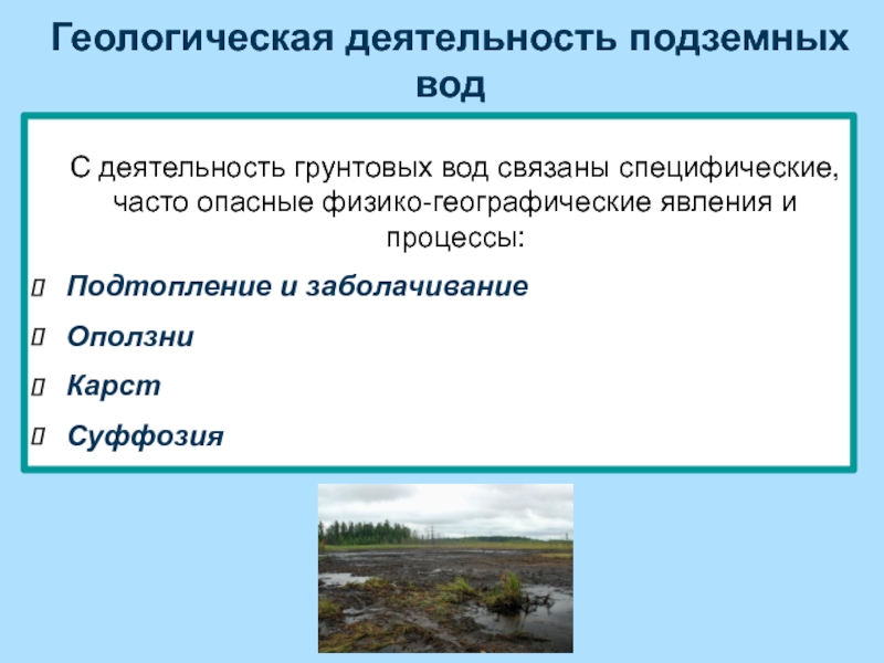 С деятельность грунтовых вод связаны специфические, часто опасные физико-географические
