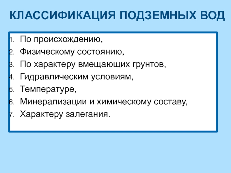 КЛАССИФИКАЦИЯ ПОДЗЕМНЫХ ВОД
