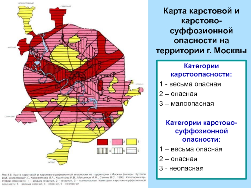 Слайд 71Карта карстовой и карстово-суффозионной опасности на территории г. Москвы