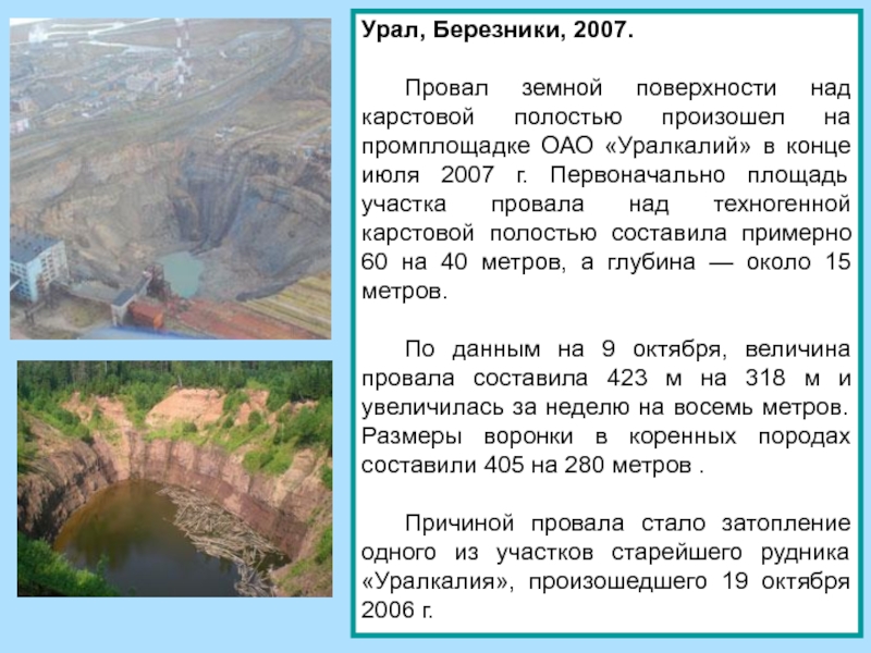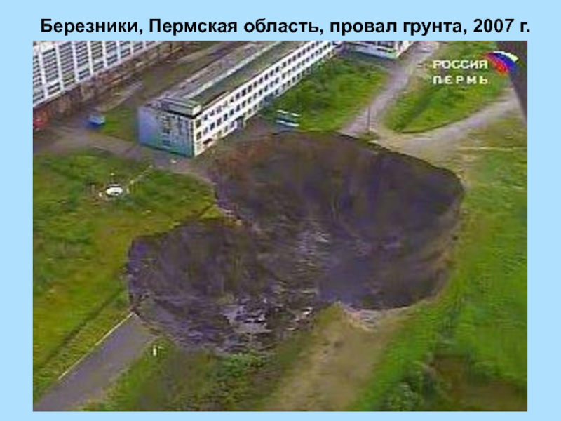 Слайд 64Березники, Пермская область, провал грунта, 2007 г.