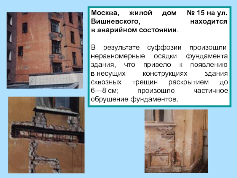 Слайд 79Москва, жилой дом № 15 на ул. Вишневского, находится в аварийном состоянии.