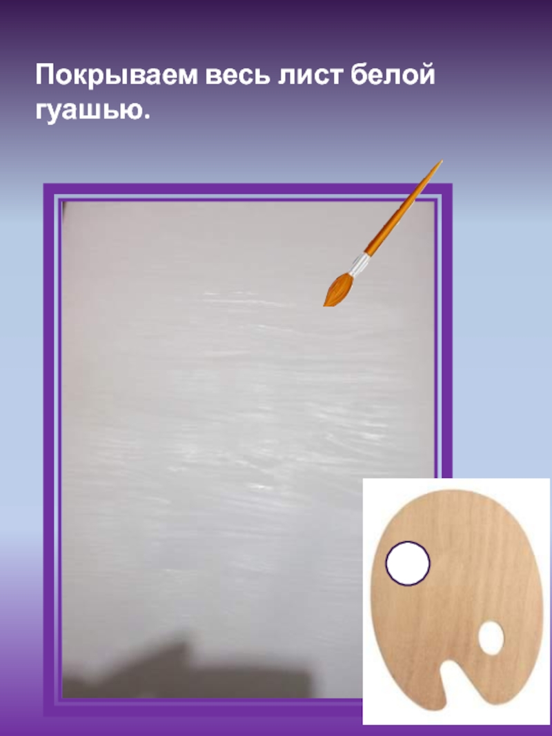 Слайд 3Покрываем весь лист белой гуашью.