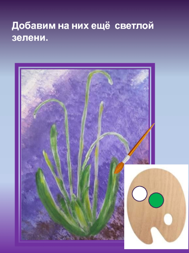 Слайд 10Добавим на них ещё светлой зелени.