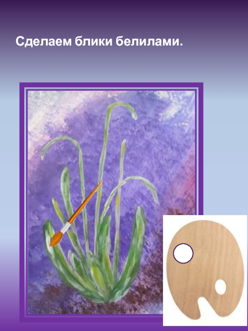Слайд 11Сделаем блики белилами.