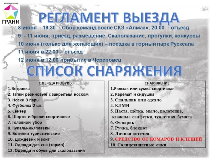 ПОЕЗДКА С «ГРАНЯМИ»«ГОРНЫЕ ПАРКИ КАРЕЛИИ8-12 ИЮНЯ 2018 г.
