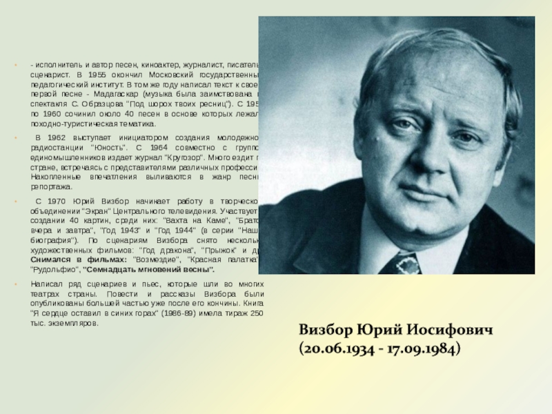 Владимир Семёнович Высоцкий (1938 — 1980)