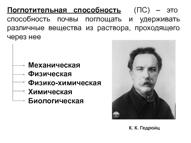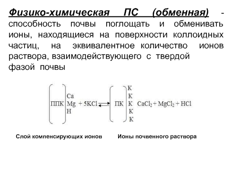 Физическая ПС –– способность почвы увеличивать концентрацию молекул различных веществ у поверхности тонкодисперсных частиц
