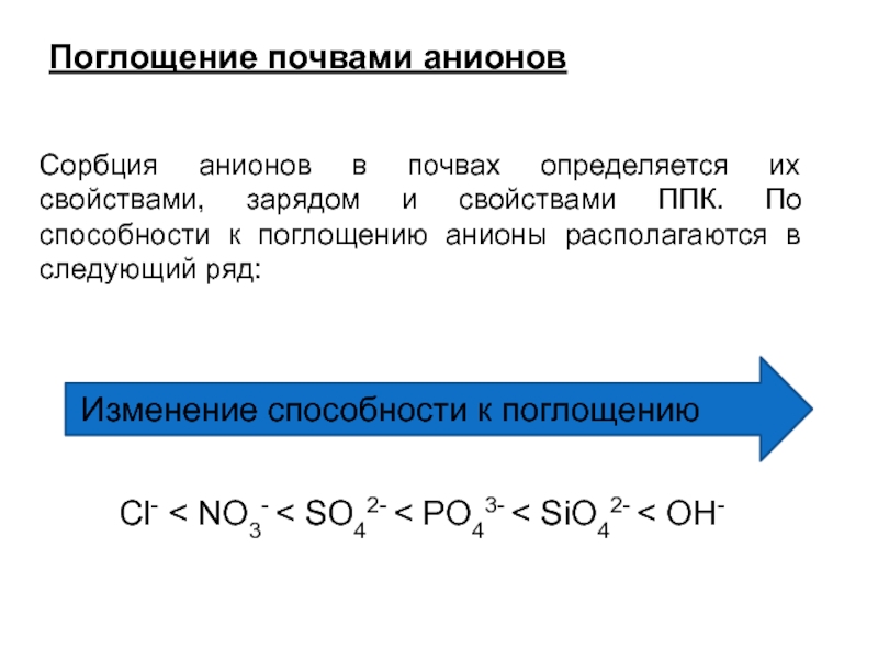 Cl- < NO3- < SO42- < PO43- < SiO42- < ОН-