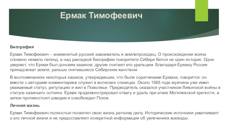 Ермак Тимофеевич – знаменитый русский завоеватель и землепроходец. О