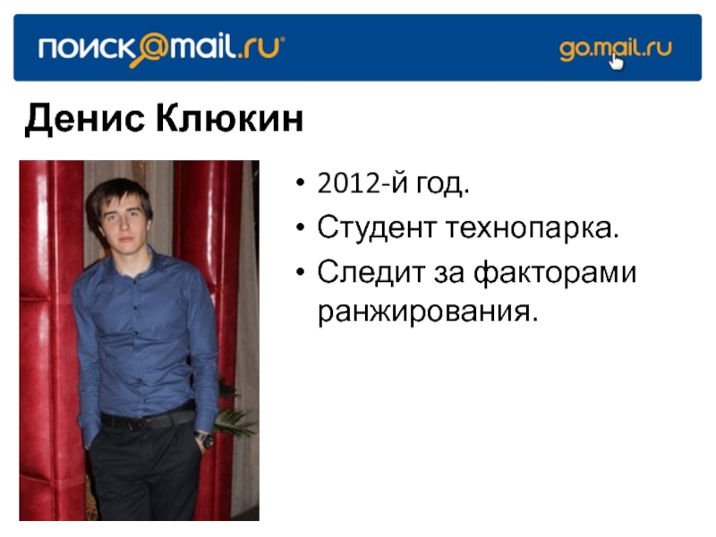Денис Клюкин2012-й год.Студент технопарка.Следит за факторами ранжирования.
