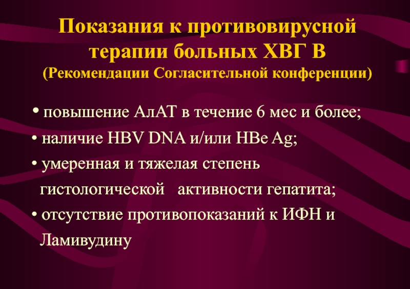 DNA и/или HBe Ag;• умеренная и тяжелая степень