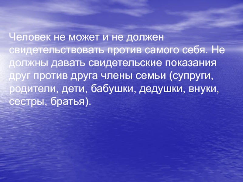 Слайд 4Человек не может и не должен свидетельствовать против самого себя.