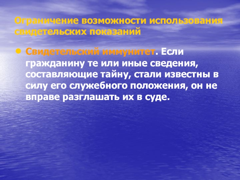 Ограничение возможности использования свидетельских показанийСвидетельский иммунитет. Если гражданину те или иные сведения, составляющие тайну, стали известны в